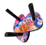 .• Acrylic painting on mushroom shaped 3D decorative three legged stool 10”x10” 6” tall. Not to be used as a regular stool, just as a statement piece.