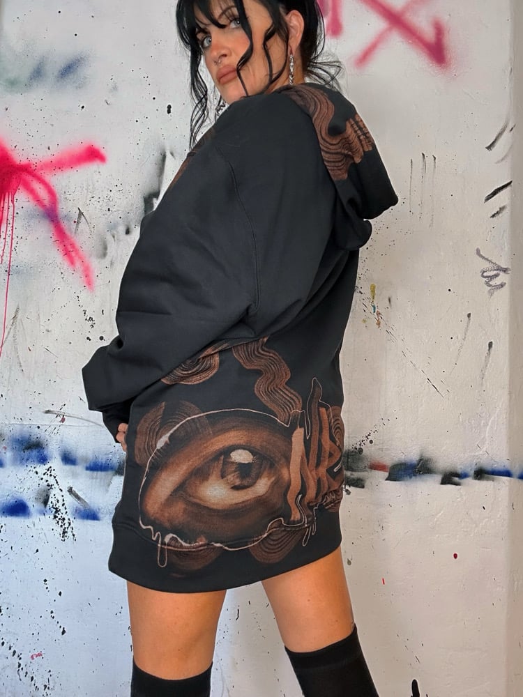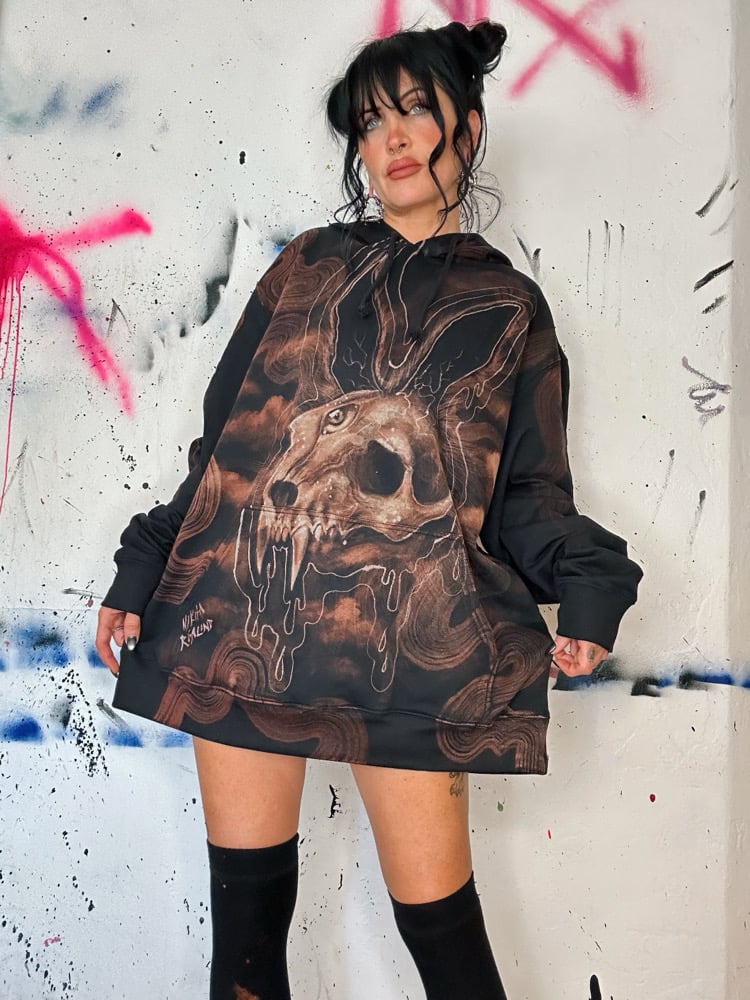 “BUNNY” One of a kind bleach painted pullover hoodie with soft fleece interior. Created by Nikita Rosalind February 9th at 2026