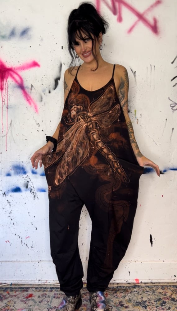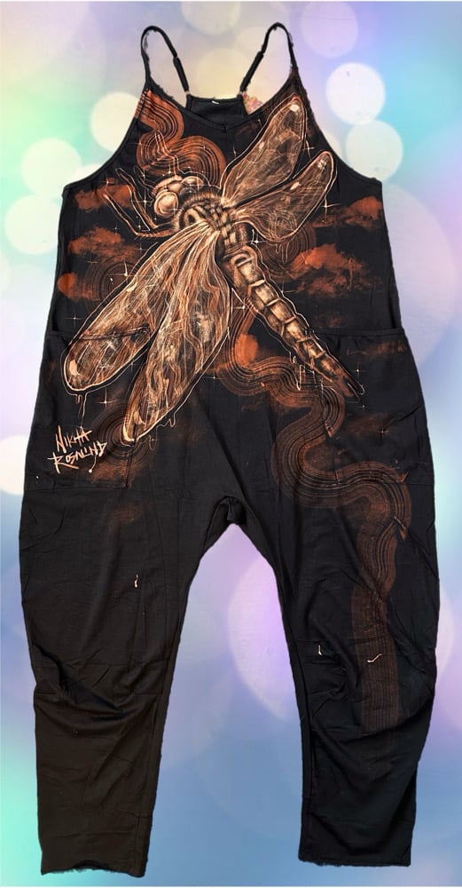 “DRAGONFLY” CUSTOM BLEACH PAINTED BAGGY ROMPER MEDIUM