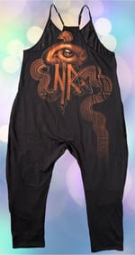 • Art you can wear! Free hand bleach painted baggy oversized romper. Lovely gradon Flynn on the front of this piece. Sparkles all around it make her magic. My signature waves across it.