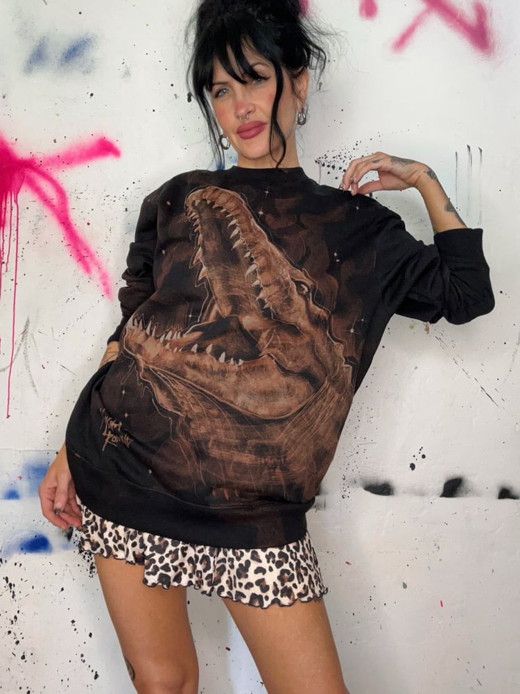 • Amazing custom bleach painted long sleeve fleece interior pullover sweater. Living in Florida for 38 years of my life I know that these creatures are a staple. I have been so afraid of them in any body of water, lurking.