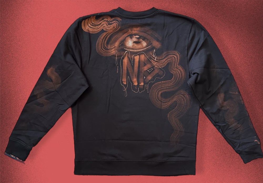 “FLORIDA GIRL” One of a kind bleach painted pullover sweater with fleece interior. Created by Nikita Rosalind October 1st 2025