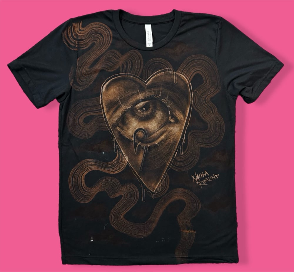 • “HOOKED" One of a kind hand painted T-shirt. Created with bleach by Nikita Rosalind November 6th 2025