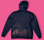 • Black. Unisex Size Large. Soft feel inside. Light sweater 60% cotton 40% polyester. Drawstring hood. Two front pockets.