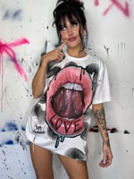 • This custom art tee is a beautiful wearable painting! LOVE this beautiful realistic piece! Super sexy and cute. My signature black waves around it.