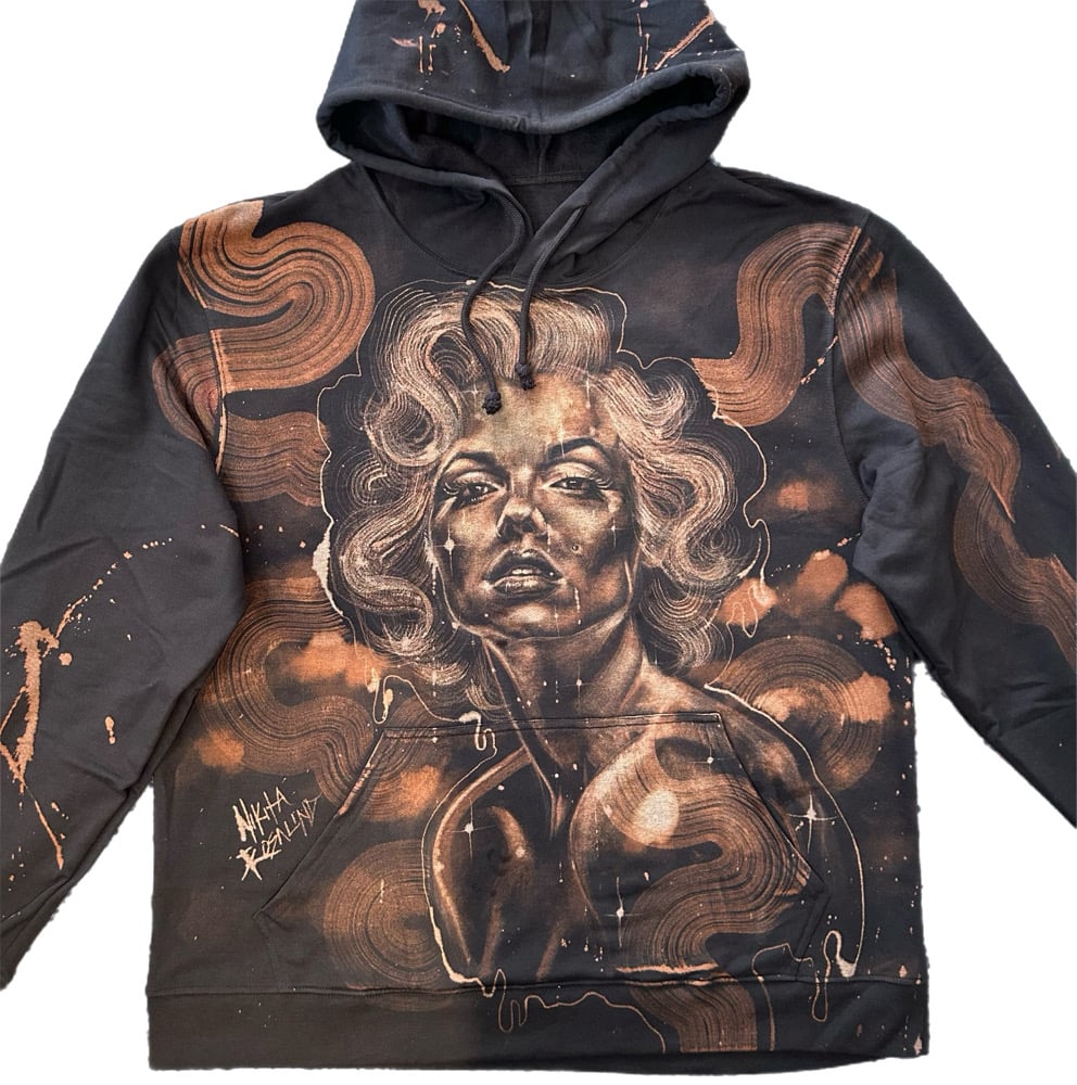 “MARILYN” CUSTOM BLEACH PAINTED PULLOVER HOODIE XL