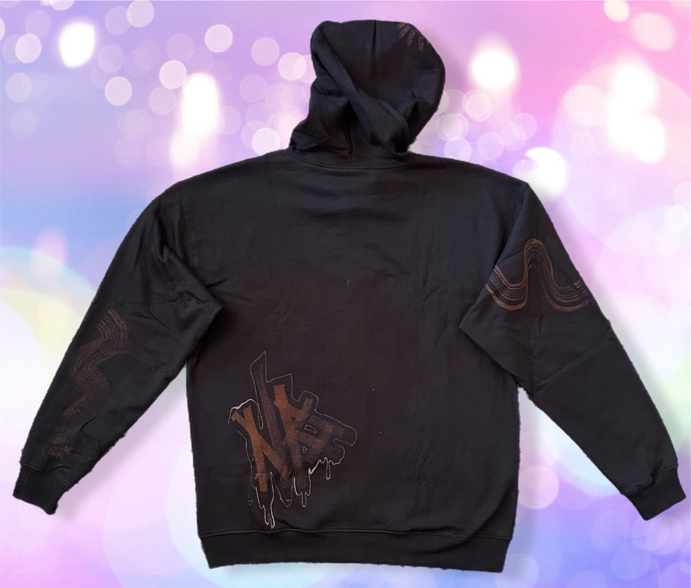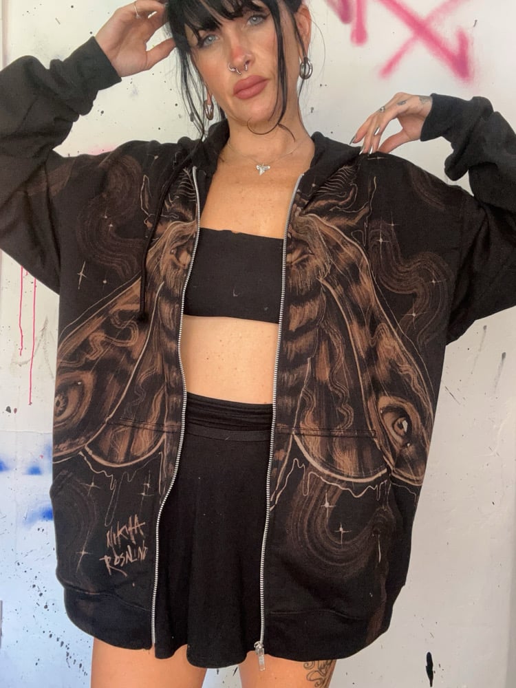 “NOCTURNAL” One of a kind bleach painted zipper hoodie with soft fleece interior. Created by Nikita Rosalind September 16th 2025