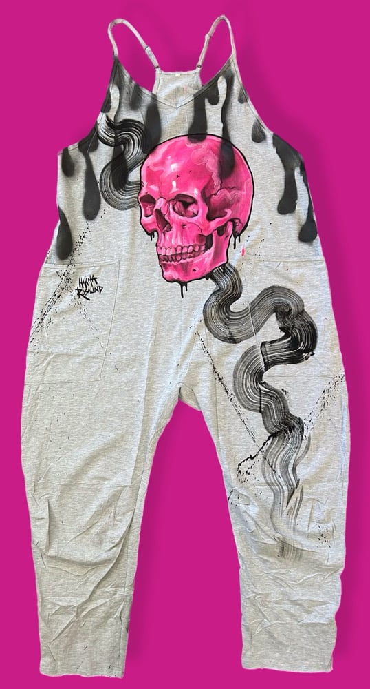 • “PUNKY” One of a kind hand painted oversized romper. Created with fabric textile paints by Nikita Rosalind October 7th 2025