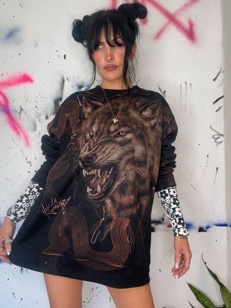“SHE WOLF” CUSTOM BLEACH PAINTED SWEATER SIZE XL
