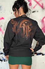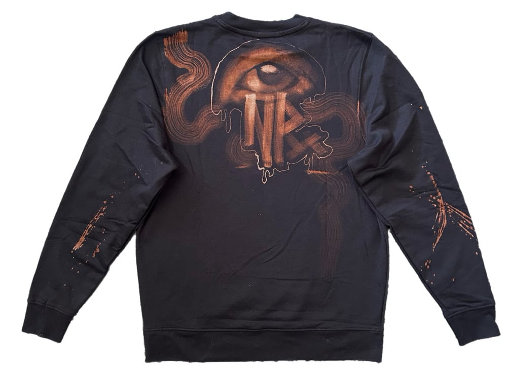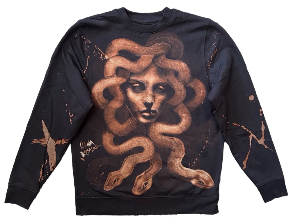 • Amazing custom bleach painted long sleeve fleece interior pullover sweater. Loved creating this piece, I kept the edges soft and dull to enhance the feeling of the piece. It’s such a cool looking image.