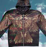 “TWO HEADED RAVEN” CUSTOM BLEACH PAINTED ZIP UP HOODIE XL
