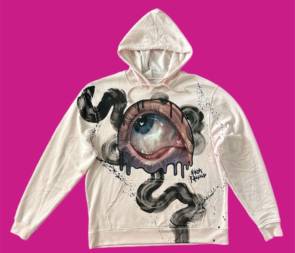 “WINDOW TO THE SOUL, APPARENTLY” CUSTOM PAINTED PULLOVER HOODIE XL