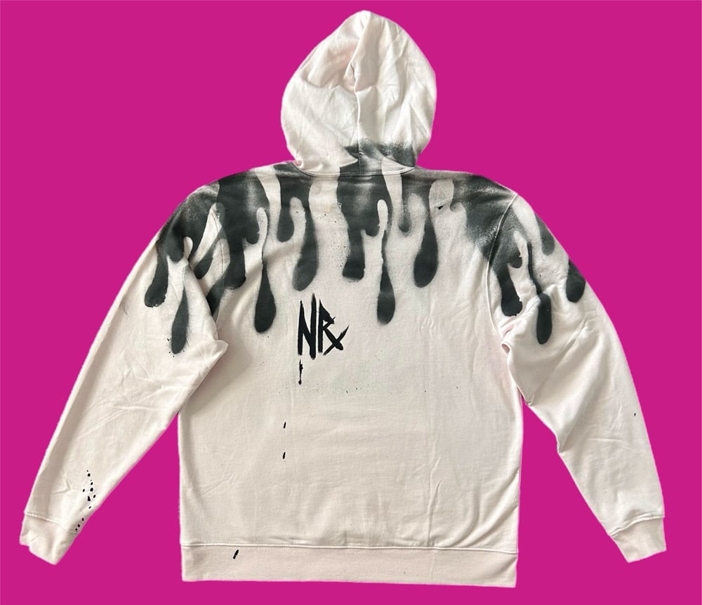 “WINDOW TO THE SOUL, APPARENTLY” One of a kind bleach painted pullover hoodie with soft fleece interior. Created by Nikita Rosalind December 16th 2025